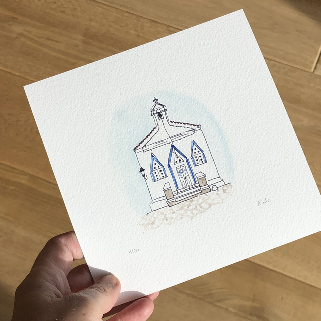 Capture the serenity of the Cyclades with this elegant watercolor art print of Agia Varvara Church in Andros, Greece. Bathed in sun-kissed whites and Aegean blues, this piece evokes strong breezes, stone paths, and the timeless beauty of the Cyclade islands. A perfect keepsake for your travels — or a thoughtful gift for someone who dreams of Greece. 🧿