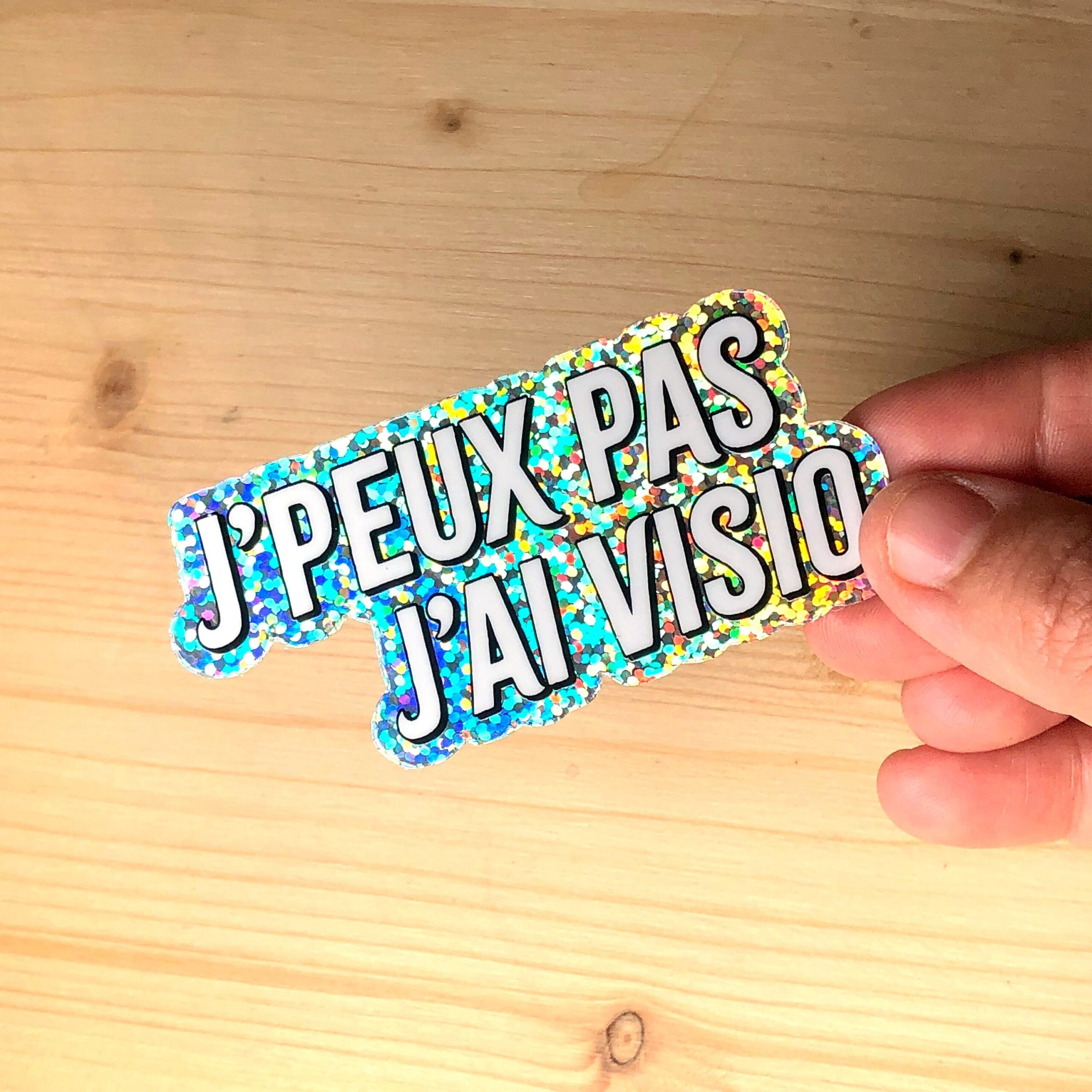 Sticker pailleté « J’peux pas j’ai visio » pour mettre des paillettes dans sa vie de bureau.