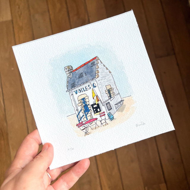 Bring the spirit of Brittany’s seafaring heritage into your home with this Boat Shed in Douarnenez Art Print. This watercolor and ink illustration captures the rustic beauty of a traditional Breton boat shed, full of maritime charm, salty air, and quiet authenticity.