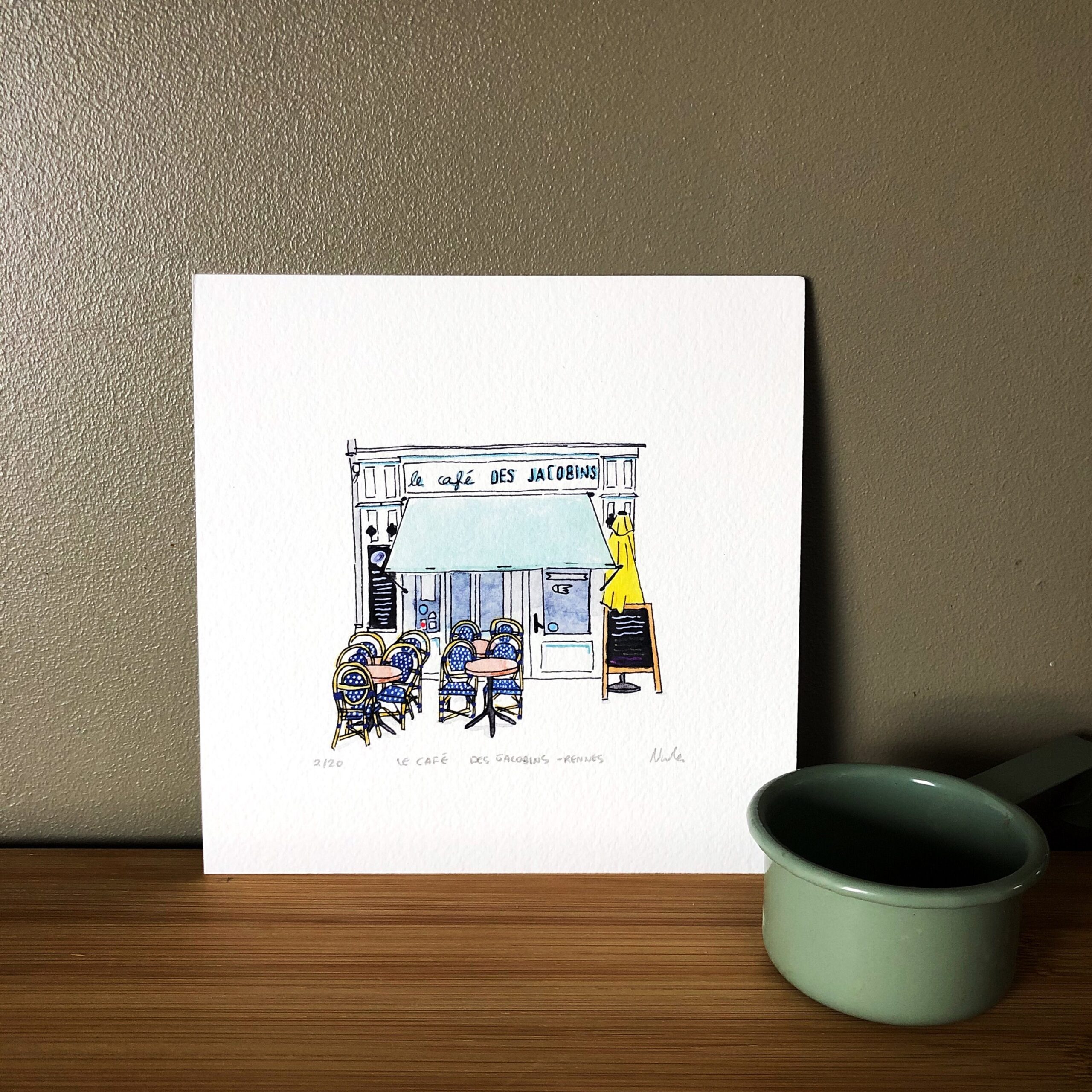 Un souvenir gourmand et artistique de Rennes à offrir ou à s’offrir. Parfait pour décorer une cuisine, une salle à manger ou un bureau avec le charme authentique des bistrots bretons.