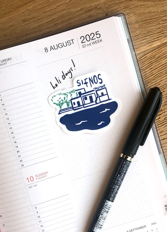 Bring a piece of the Cyclades to your everyday with this charming vinyl sticker inspired by the Greek island of Sifnos. Perfect for decorating your travel journal, laptop, water bottle, or planner, it captures the spirit of sun-soaked wanderings and slow summer days.