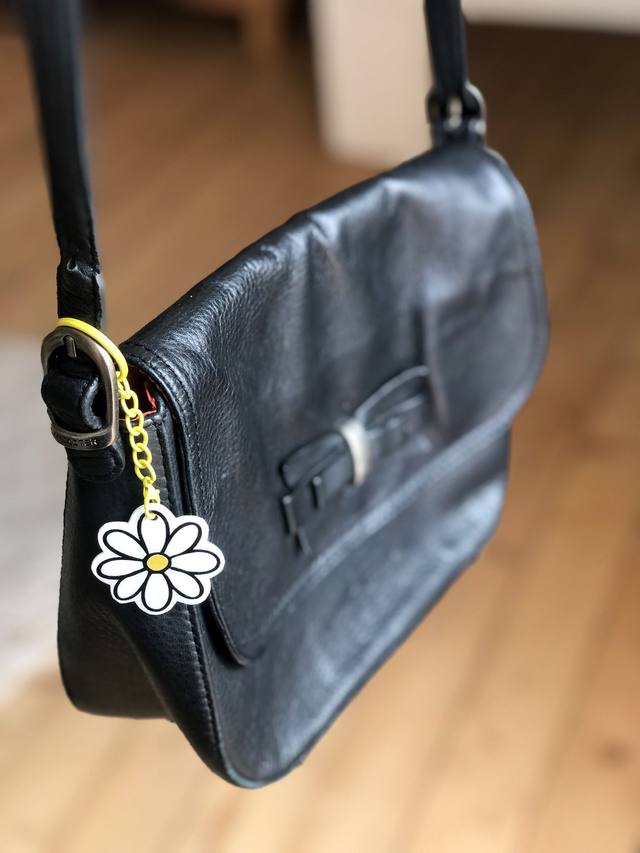 Bring sunshine to your everyday with this cheerful daisy bag charm. Handmade and hand-drawn, each piece is full of personality and whimsy. Add it to your bag, backpack, or keys for a daily dose of color and joy. A thoughtful, feel-good gift for someone special—or for yourself! 🌼💛