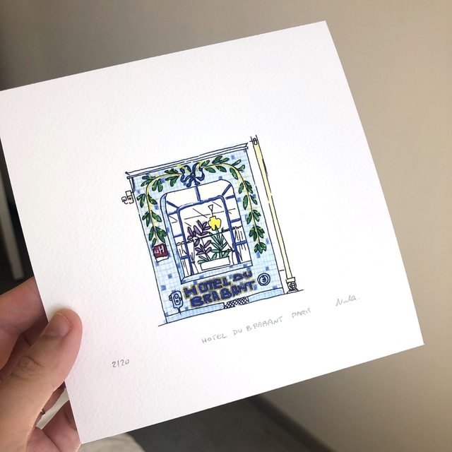 This watercolor art print of the Hôtel du Brabant captures the quiet elegance and nostalgia of a timeless Parisian landmark. Nestled in the heart of the capital, this historic hotel reflects the soul of old Paris with its delicate art deco touches and vintage charm. A beautiful piece for architecture lovers or anyone drawn to Parisian heritage and atmosphere.