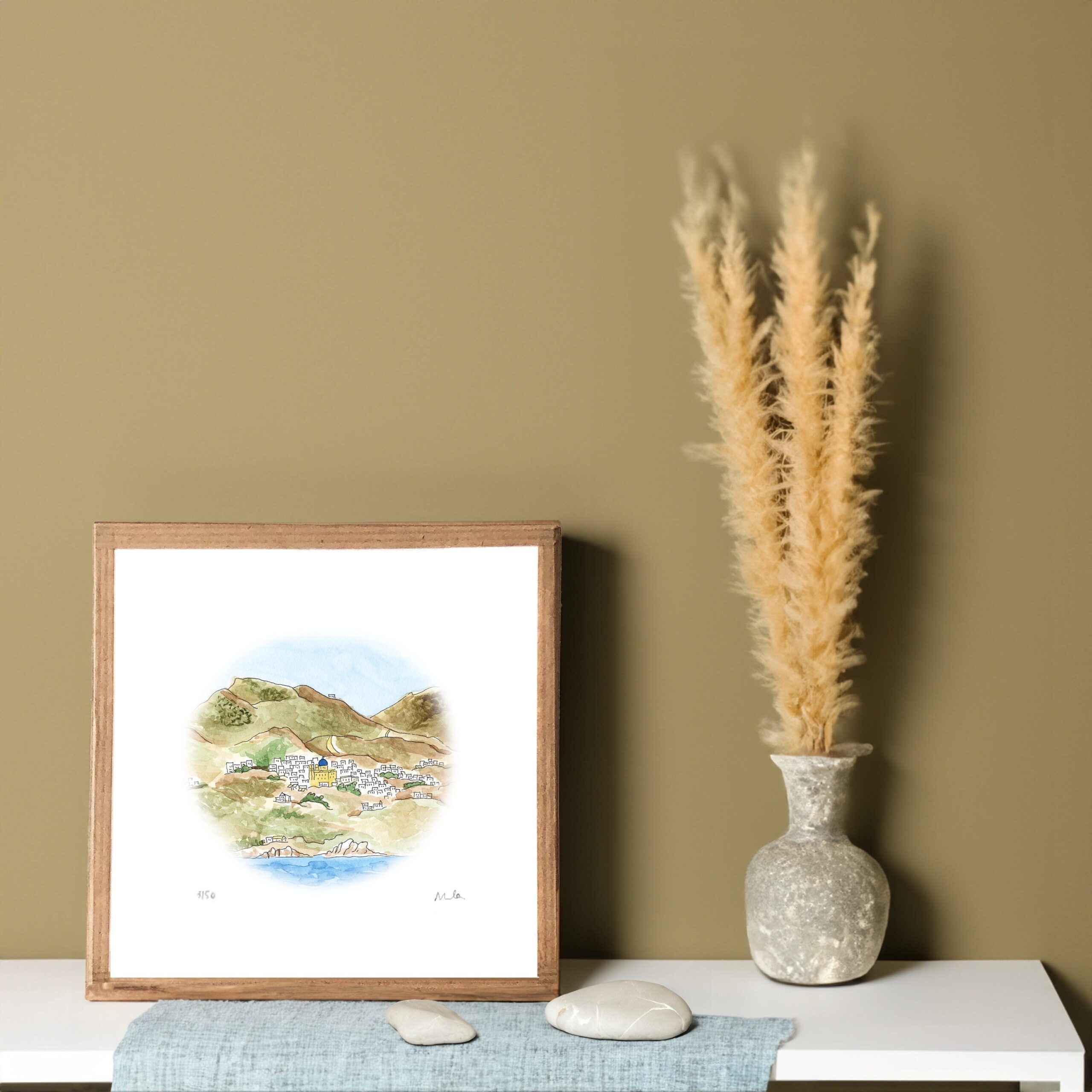 Un souvenir de voyage à Kimolos ou un cadeau pour un amoureux de la Grèce secrète et authentique. Une décoration murale apaisante et lumineuse pour un salon, une chambre ou une salle de bain aux accents méditerranéens.
