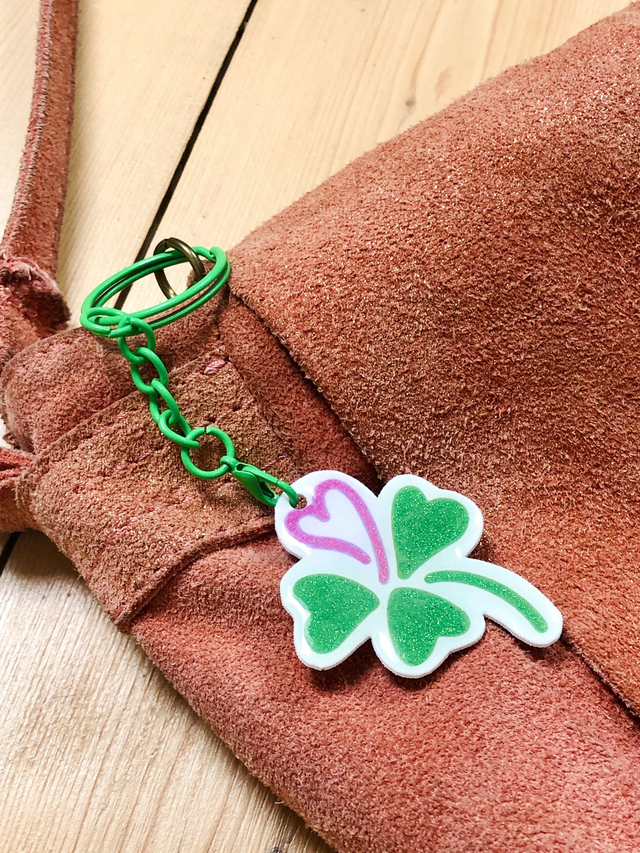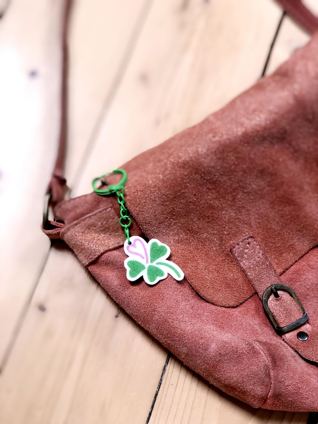 Carry love and luck wherever you go with this handmade bag charm featuring a unique four-leaf clover where the fourth leaf is heart-shaped – a sweet symbol of romantic luck and positivity. 💚✨