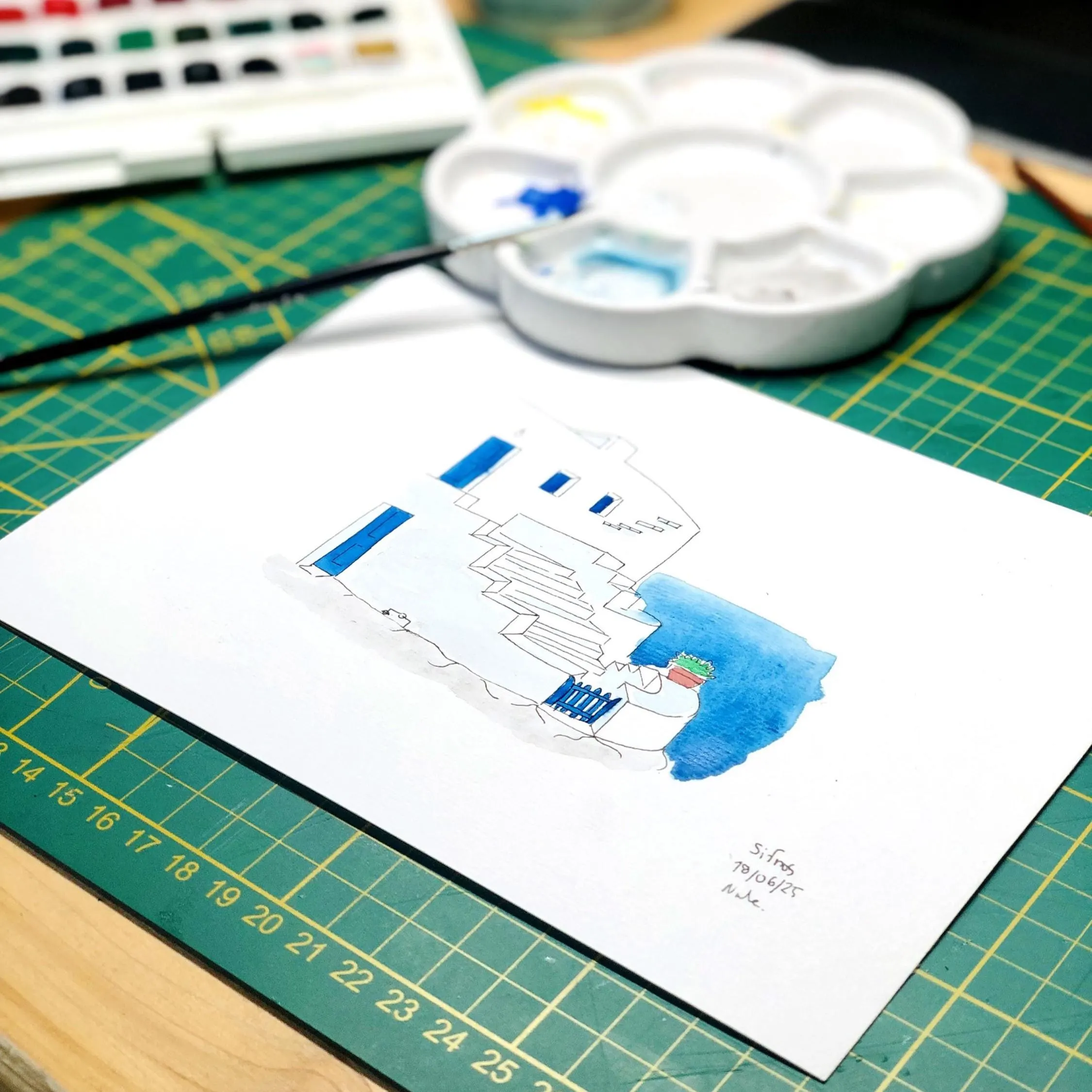 Un souvenir de voyage à Sifnos ou un cadeau pour un amoureux de la Grèce authentique et des îles préservées. Une décoration murale douce et lumineuse pour un salon, une chambre ou une salle de bain aux teintes méditerranéennes.