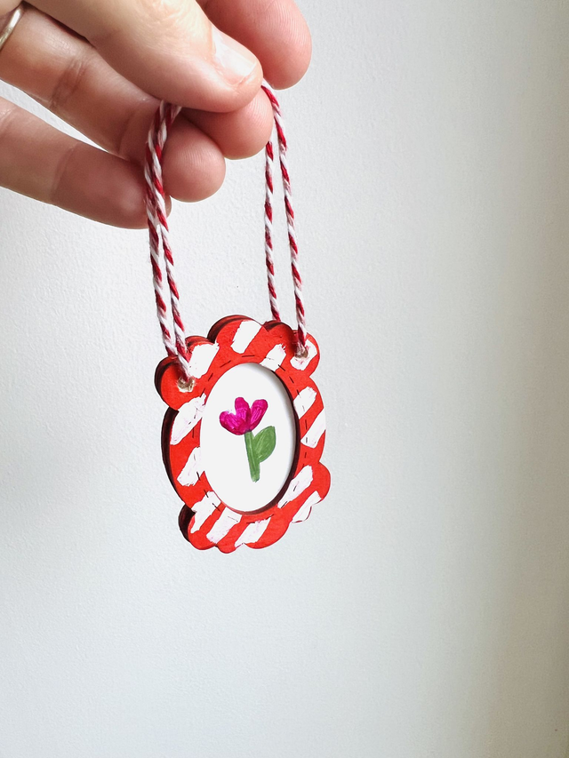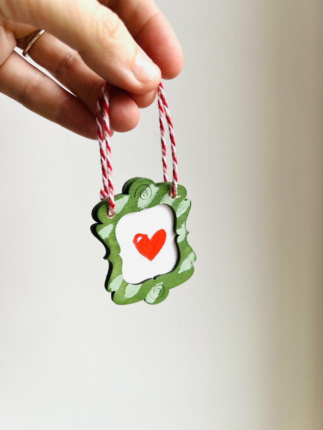 Bring a touch of authenticity to your tree with this miniature hand-painted artwork. Each piece is completely unique: choose a red or green frame with an exclusive illustration inside. A small handmade treasure to gift or collect for a magical holiday season.