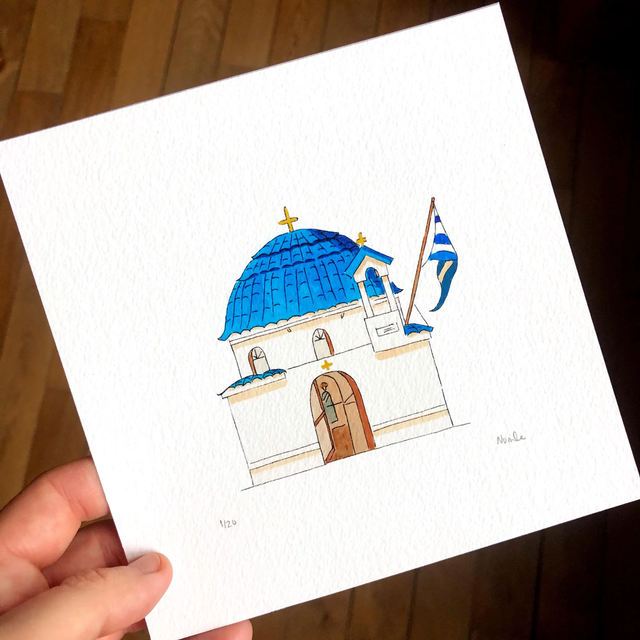Orthodox Chapel Illustration | Greek Island Wall Art | Faith-Inspired Gift