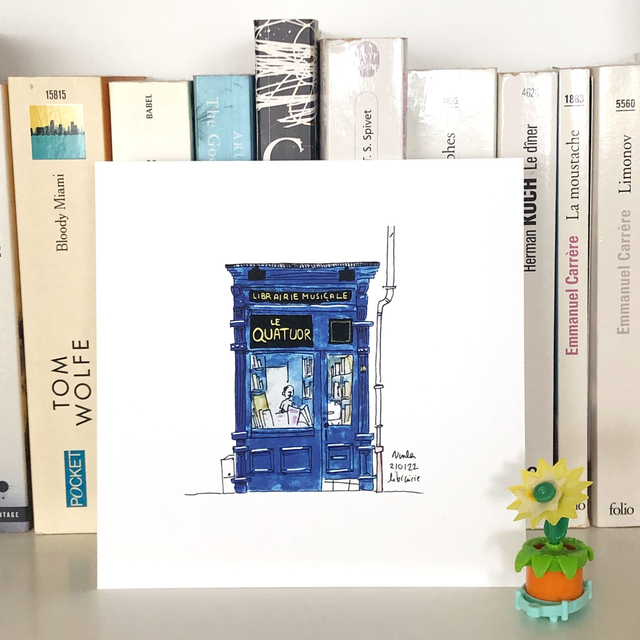 Capture the poetic charm of a Parisian music bookshop with this elegant watercolor art print. A tribute to the harmony between music and literature, this piece is perfect for decorating a cozy studio, music room, or reading corner. A thoughtful and unique gift for musicians, luthiers, and anyone enchanted by the ambiance of Paris.