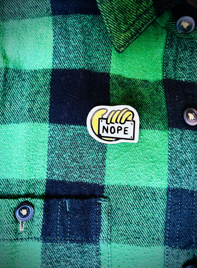 “Nope” Handmade Glitter Pin – For Days in Denial