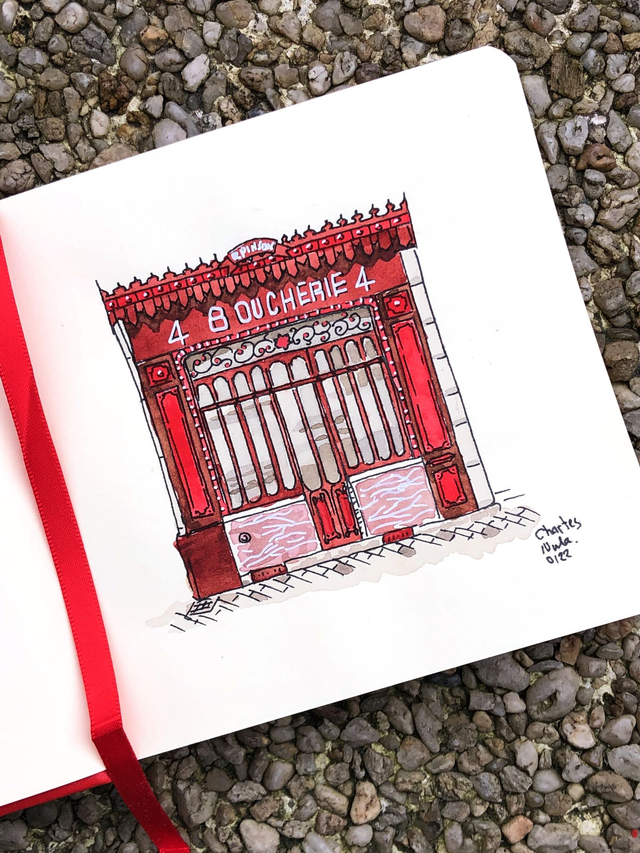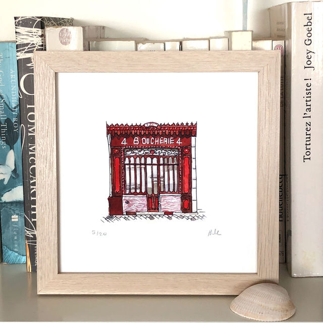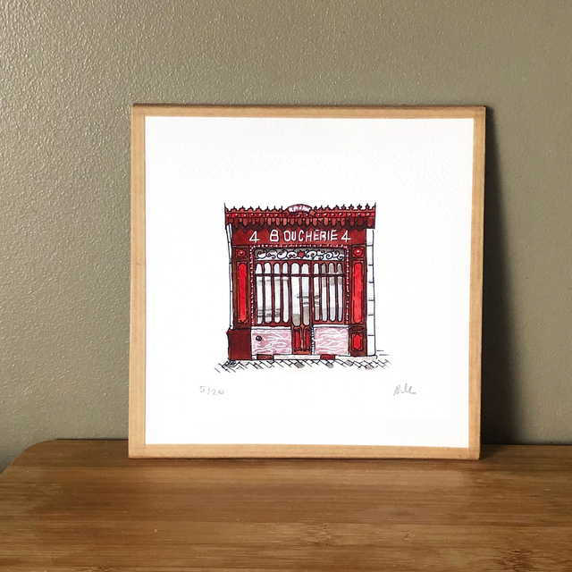 Immerse yourself in the charming streets of Chartres, France with our exquisite art print featuring the timeless watercolor illustrations of Butcher Shop 'Pinson.' This print honors the rich heritage of one of France's oldest butcher shops, capturing the essence of tradition and culinary excellence. An ideal gift for grill chefs and meat enthusiasts, this unique piece of wall art adds a touch of gastronomic elegance to any space.