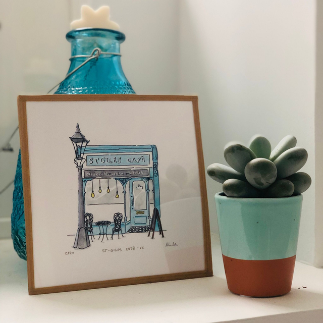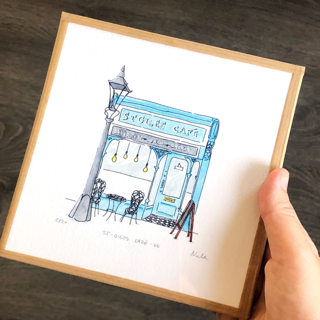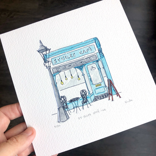 Bring the cozy, intellectual charm of Oxford’s Saint Giles Café into your home with this beautifully detailed watercolor art print. Whether you’ve strolled down the historic street or dream of sipping coffee in the heart of England, this print offers a warm and nostalgic tribute to the UK’s café culture.
