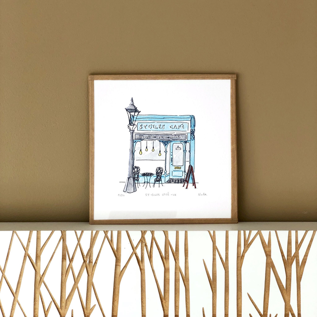 Saint Giles Café Art Print – Oxford Coffee Shop Wall Art – UK Travel Decor – Gift for Coffee Lovers
