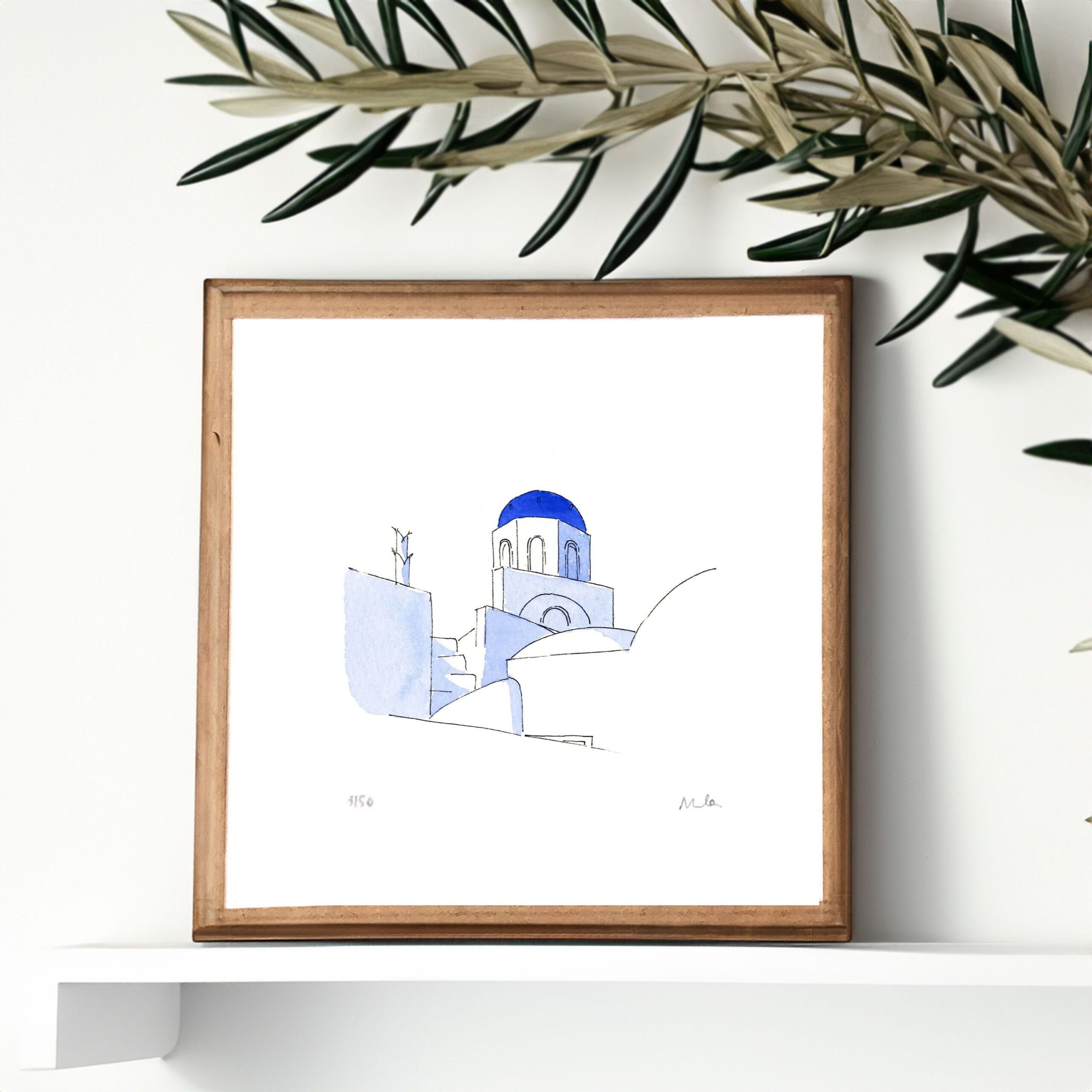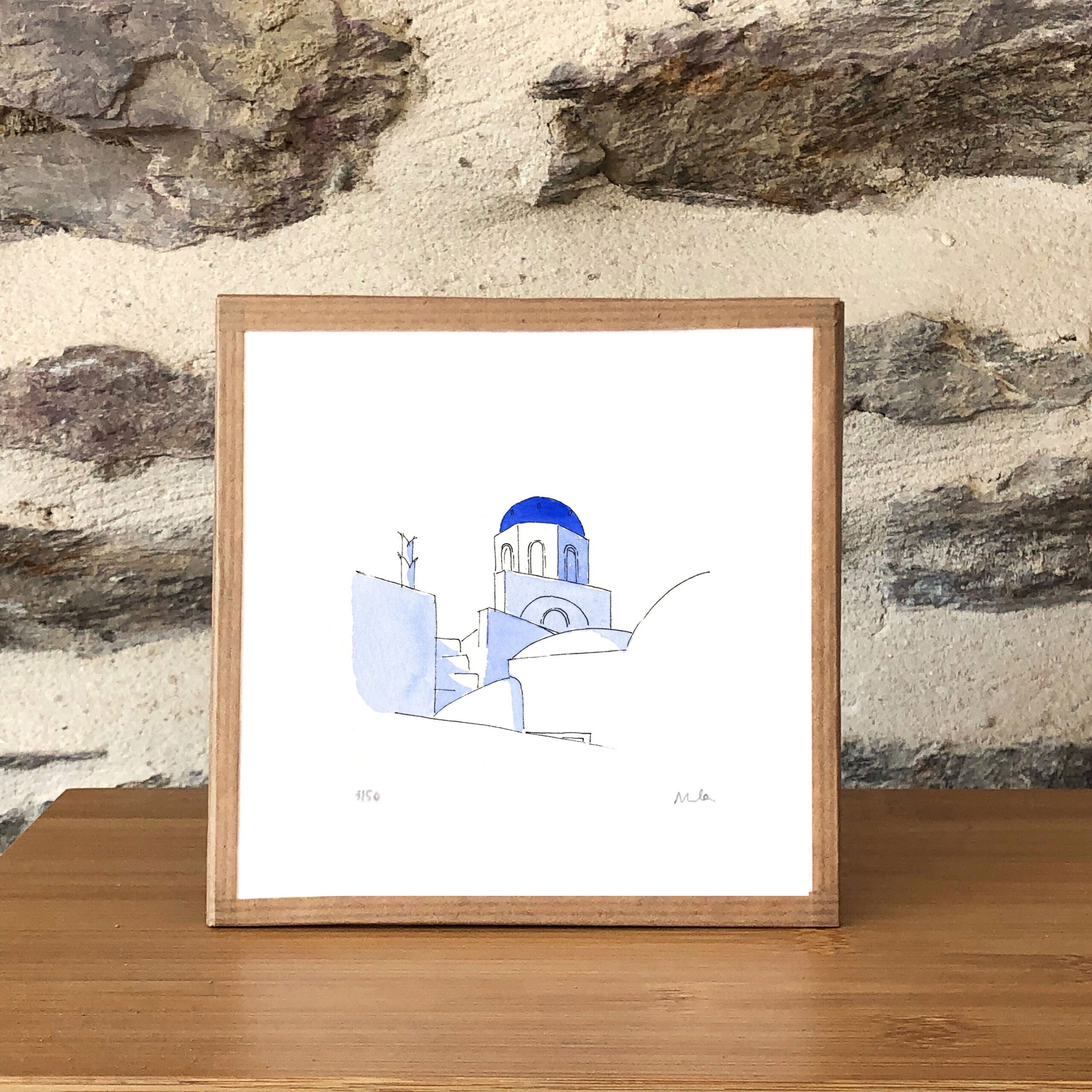 Un souvenir de voyage à Santorin ou un cadeau pour un amoureux de la Grèce et de la Méditerranée. Une décoration murale lumineuse et apaisante, aux teintes bleu et blanc, parfaite pour un salon, une chambre ou une salle de bain.