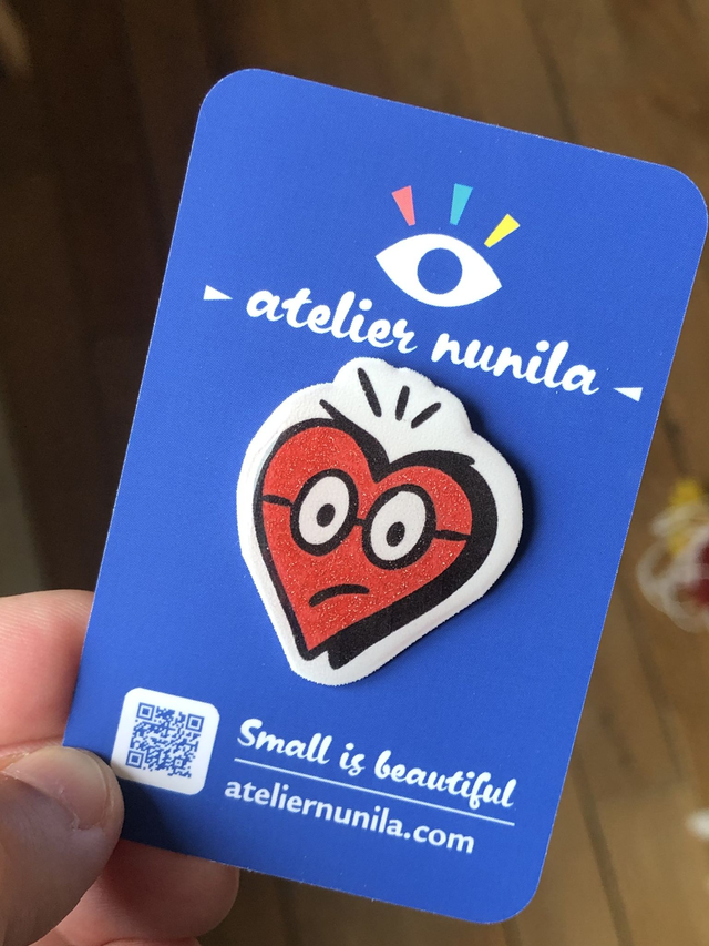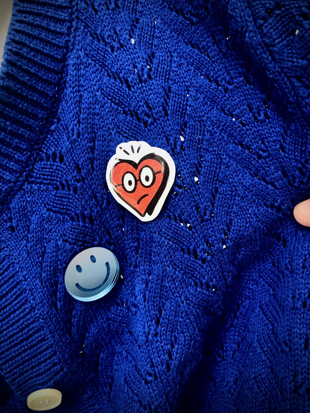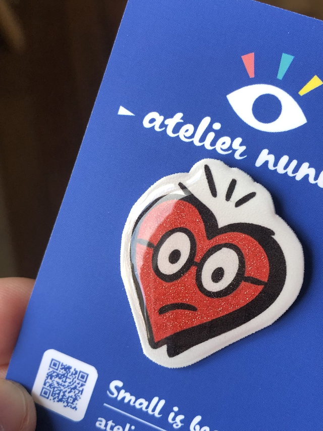 Skeptical Glitter Heart Pin – Resin Brooch with Attitude