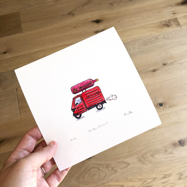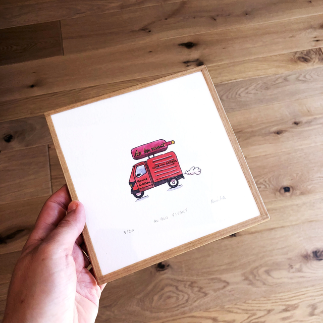 Discover our charming art print showcasing a watercolor illustration of a classic vintage van delivering wine. Whether you're a wine lover or a vintage car enthusiast, this print brings a nostalgic and whimsical touch to any space. Immerse yourself in the essence of wine country and the joy of discovery with this delightful artwork. It also makes a perfect gift for French gourmets and wine connoisseurs.